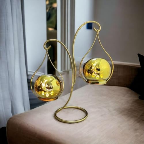 - تصميم فريد: فانوس معدني ذهبي أنيق مع حامل دائري متميز وتصميم معلق يضيف لمسة ساحرة لديكور منزلك
