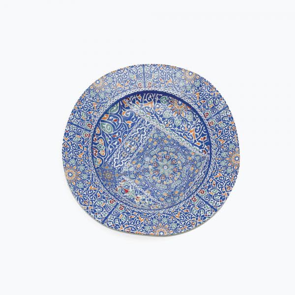 Generic - Decorative Melamine Dinner Plate, Blue Floral Mandala Pattern, 23cm