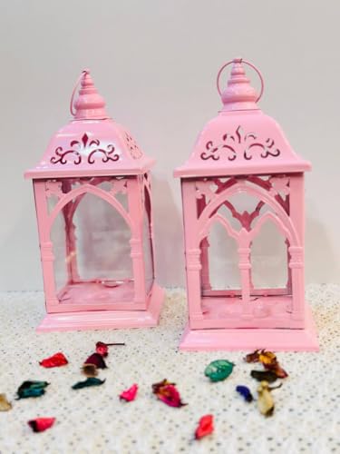 Generic - Decorative Metal Lanterns, Gothic Arch Design, Pink, Set of 2