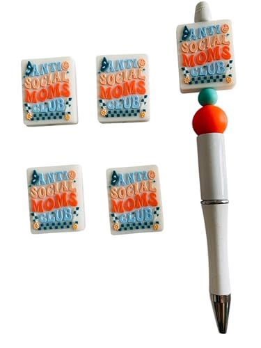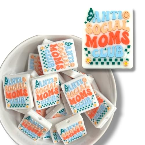 • PACK CONTENTS: Set of 4 decorative silicone focal beads featuring the 'Anti Social Moms Club' design in white with multicolour pattern