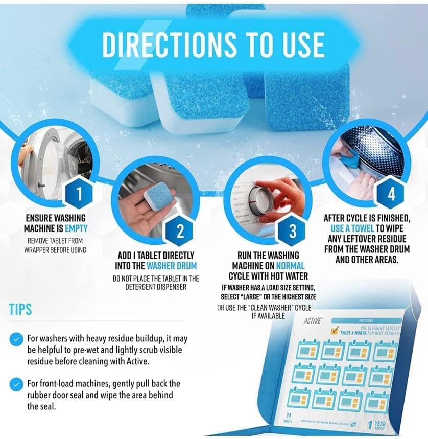 - تكفيك لأكثر من 12 دورة تنظيف عميق لتحافظ على غسالتك نظيفة وفعّالة طوال العام