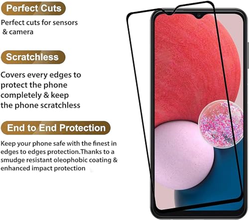 Generic - واقي شاشة امامي من دير لموبايل سامسونج جالاكسي A13 / سامسونج A23 من الزجاج المقسى بدرجة صلابة 9، اطار اسود بالغراء الكامل، تغطية من الحافة الى الحافة