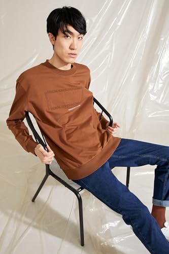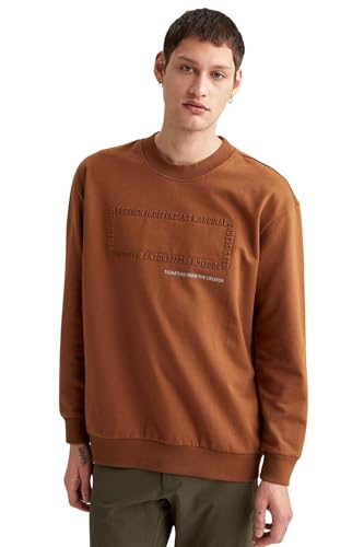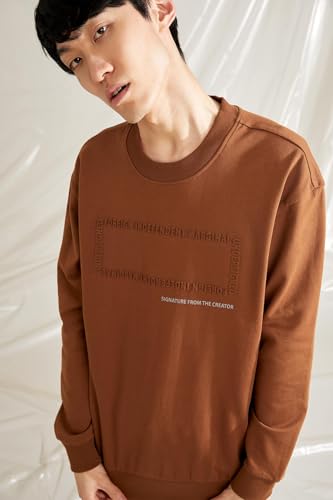 DeFacto - ديفاكتو سويت شيرت محبوك بقصة واسعة ورقبة دائرية ضيقة واكمام طويلة للرجال، لون بني فاتح، مقاس L