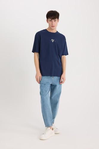 DeFacto - DeFacto Mens Boxy Fit Crew Neck Short Sleeve Young Knitted T-Shirt E0331AX T-Shirt