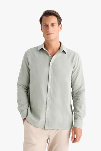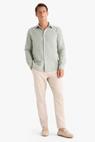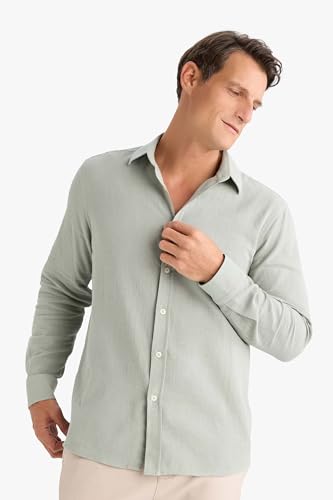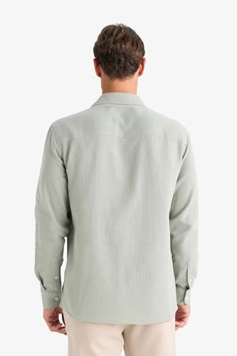 DeFacto - DeFacto Mens Regular Fit Polo Neck Long Sleeve Casual Woven Top Long Sleeve Shirt D7394AX Long Sleeve Shirt