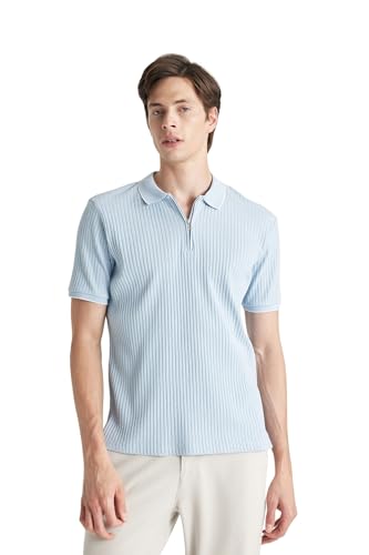 DeFacto - تيشيرت بولو من قماش منسوج للرجال، تيشيرت كاجوال بقصة ضيقة وأكمام قصيرة من ديفاكتو، قطعة واحدة