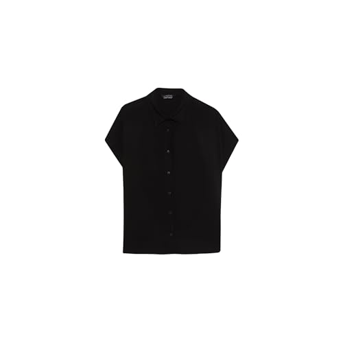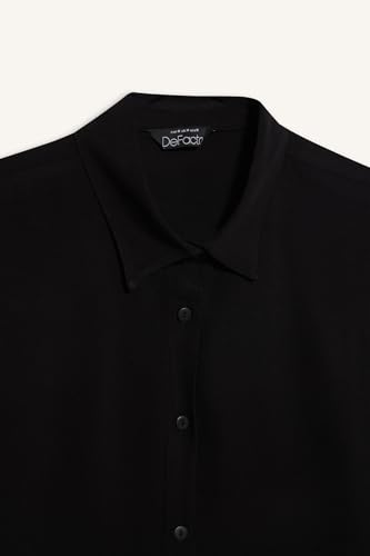 DeFacto - DeFacto Woman Regular Fit Shirt Neck Short Sleeve Young Woven Top Short Sleeve Shirt E3973AX,Black S