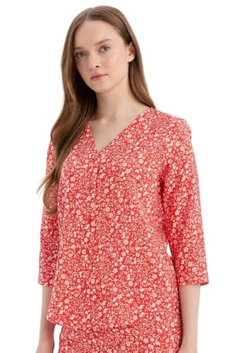 DeFacto - DeFacto Woman Traditional Regular Fit V Neck Short Sleeve Woven Top Long Sleeve Shirt,Red XXL