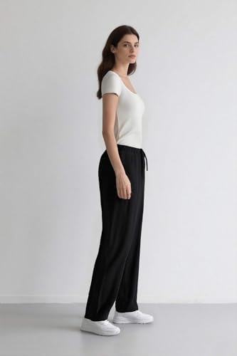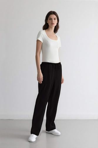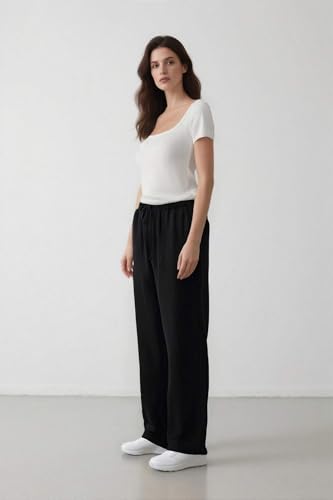 DeFacto - بنطلون من نسيج محبوك بقصة واسعة تقليدية للنساء من ديفاكتو (عبوة من قطعة واحدة)