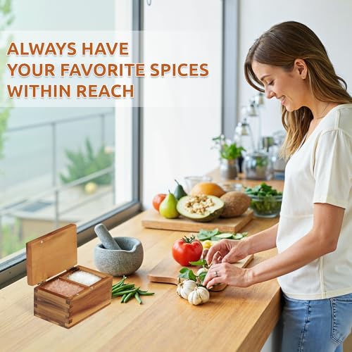 - Multi-Functional Acacia Salt Box: This is exactly what you need for your kitchen, to cook delicious dishes, the ingredients to make them must also be the most perfect. Our salt cellar helps keep your salt in its original form, away from external factors that can affect its quality such as watery, dirty and insects. This Salt Cellar may seem simple, but they are equally important in your kitchen.
