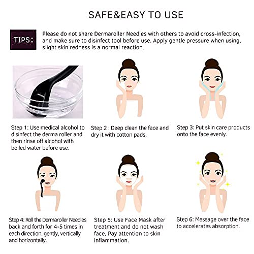 - HIGH-QUALITY FACIAL SKIN CARE TOOLS - Use gentle pressure to roll the covered area in the vertical, horizontal and diagonal directions about 3 to 4 times. Use it regularly and correctly, you will get beautiful and healthy skin. 1-2 times a week, and replace the Derma Roller every 2-3 months
