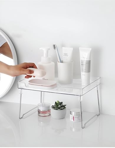 Generic - Desktop Shelf - Clear acrylic foldable stand providing stable storage for office supplies or kitchen spices, maintaining balance between strength, elegance, and multifunctional organization