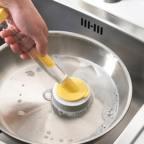 - Just fill the handle with washing-up liquid, press lightly on the button and presto – grease and food residues disappear from your plates and frying pans.