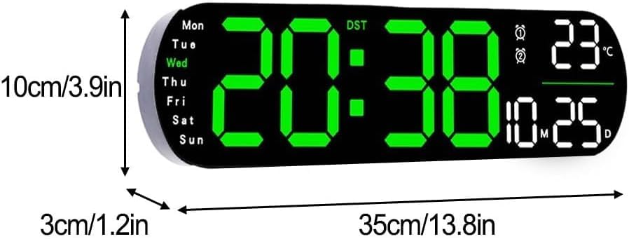 • [14 inch Large LED Display]: The digital clock has a large 14" display, the 4 inch high-contrast giant numbers make it easy to read even from a distance, from all angles. The digital wall clock features the function of display time, date, day of the week, and temperature.