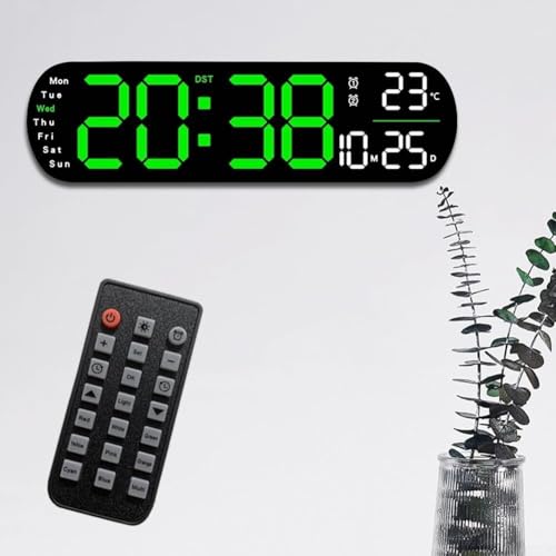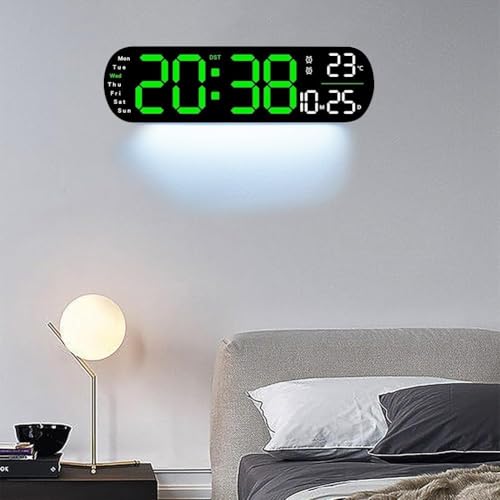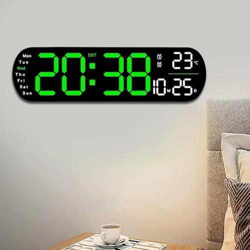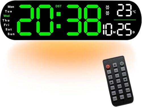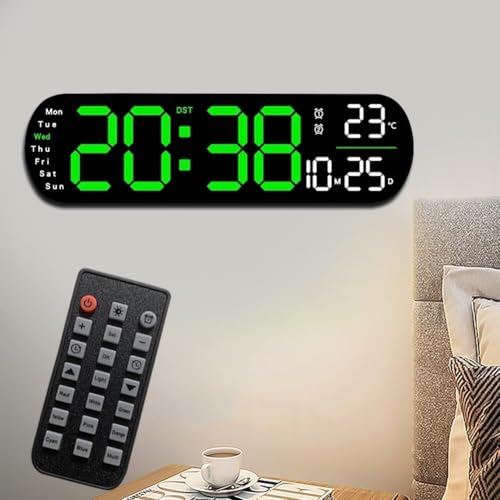 Generic - Digital Wall Clock with Remote Control, Inch Wall Clock with Large Display, LED Digital Clock for Classroom Living Room, Auto Dimming with 9 RGB Colors, Date, Temperature, Timer (Green)