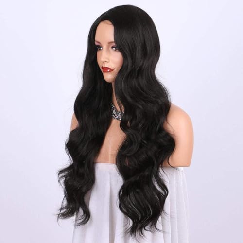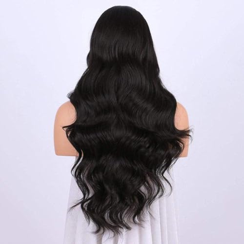 - باروكة صناعية طويلة مموجة مقاوة للحرارة من ديلاردز، أسود.