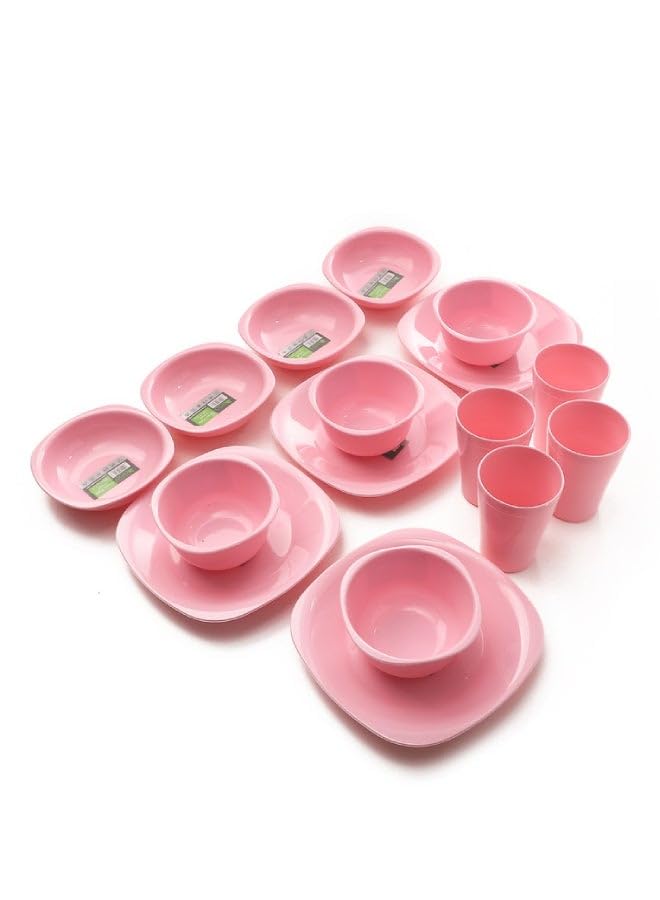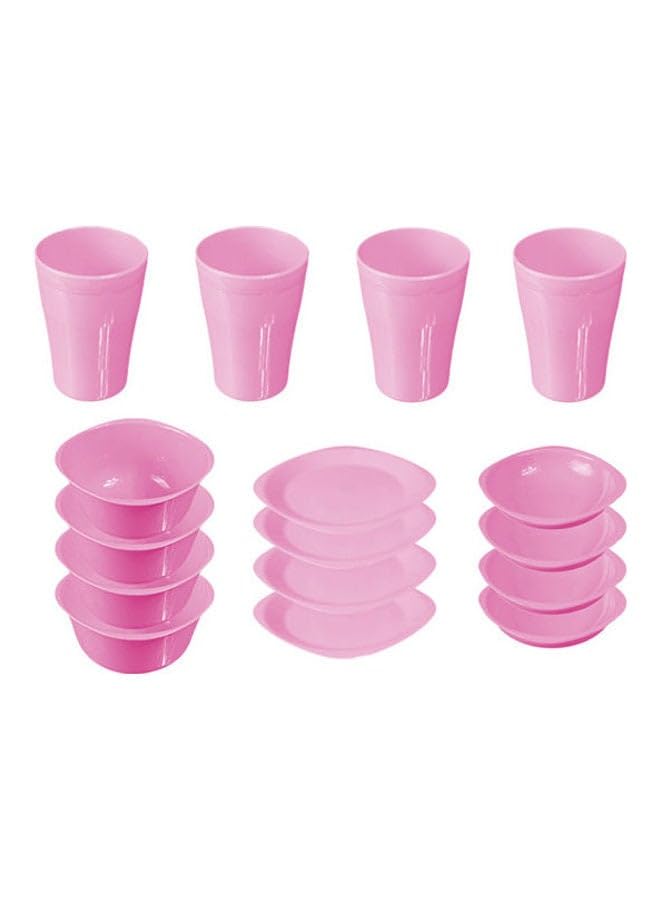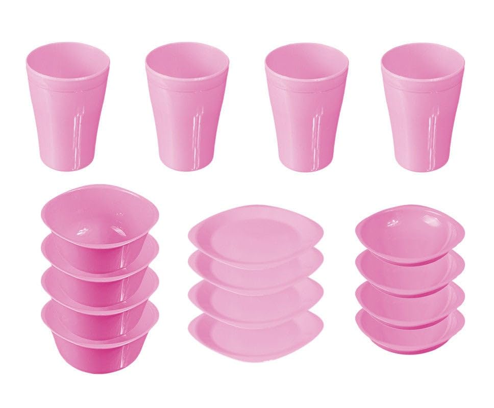 generic - طقم اطباق مائدة - 16 قطعة طبق مسطح بينك مقاس 7.5 انش - طبق عميق مقاس 13 سم - حجم وعاء 400 مل - مقاس الكوب 300 مل