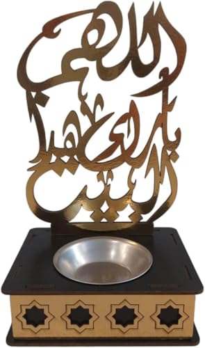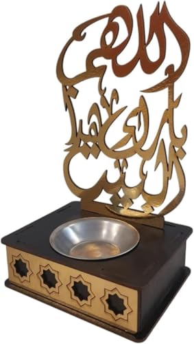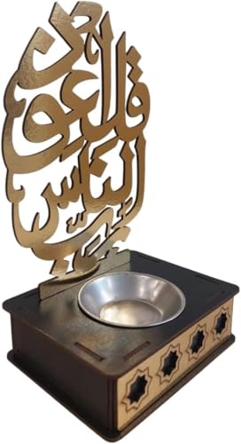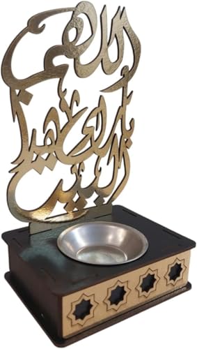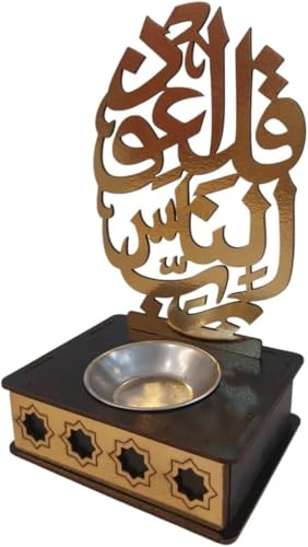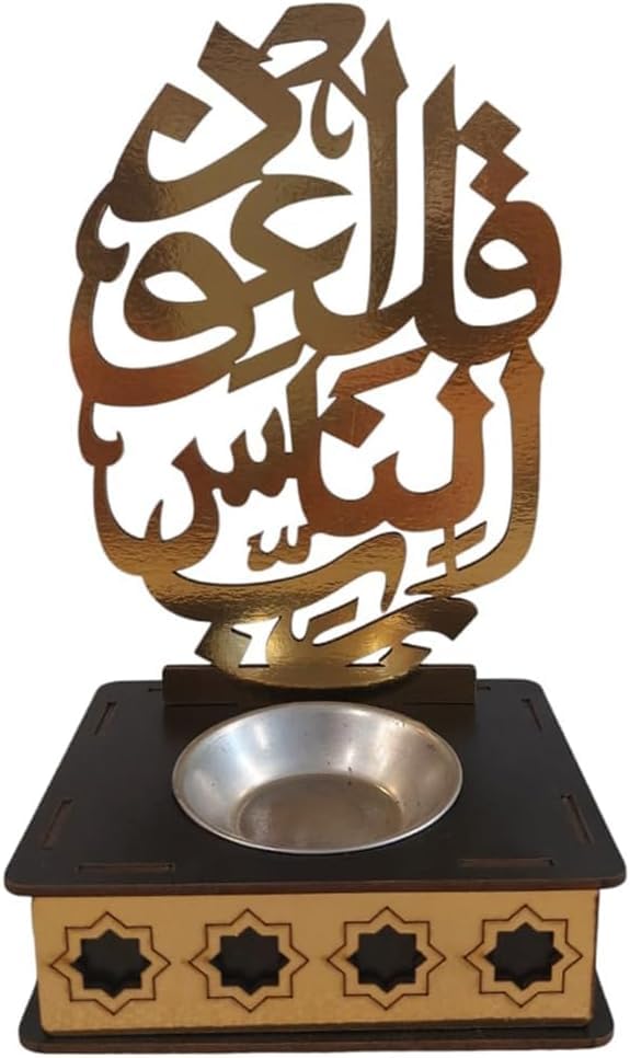 DIY-Kit - DIY-Kit مبخرة خشبية بعبارات اسلامية - مبخرة خشب تصميم اسلامي مميز - مبخرة خشب تصميم اسلامي مميز آيات اسلامية او دعاء او رمضان كريم - مبخرة خشب لون بني وذهبي واسود مبخرة بطبق معدني تصميم شيك ومميز