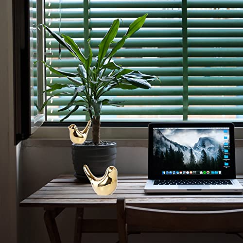 DIYOMR - مجموعة تماثيل طيور صغيرة من السيراميك بلون ذهبي بتصميم عصري لديكور المنزل والغرفة، منحوتات لتزيين نافذة المنزل والمكتب وسطح المكتب وديكور بونساي (ذهبي، قطعتان، مقاس لارج) من ديومر