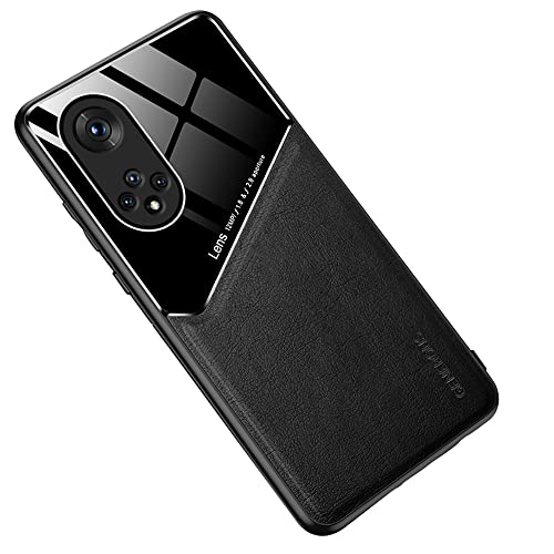 Dl3 Mobilak - Dl3 Mobilak Luxury Case For Oppo Reno 8T 5G/Oppo A1 Pro, Ultra-Thin Soft TPU Frame, Back Leather Mixed Double+Plexiglass Protective Cover With Built-in Car Magnetic - Black