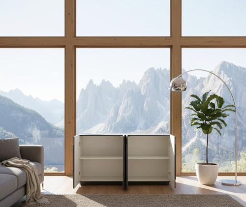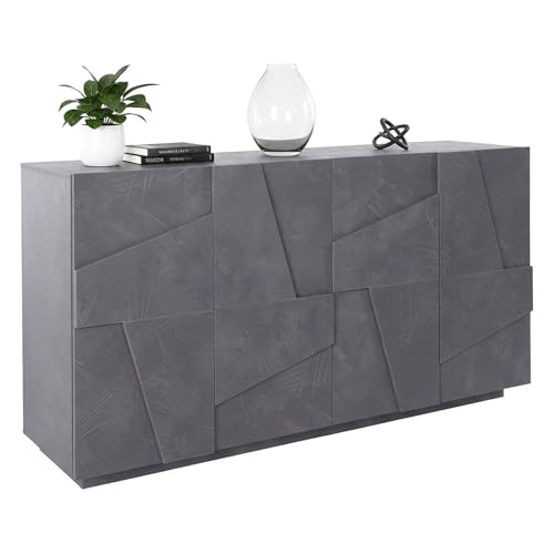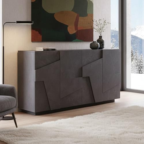 - STRUCTURE AND USE - Practical and space-saving living room sideboard structured with four hinged doors with geometric and asymmetrical design, for a total of four shelves in the interior - Doors have a relief detail that makes the structure even more unique - Doors and drawers are without handles both equipped with strong hinges and metal rails - The structure is entirely in slate colour - The top shelf is perfect and welwelwelwelwelwelTV or your favourite ornaments