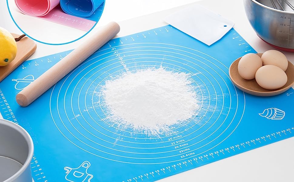 Drasti Impex - Silicon Fondant Rolling Mat or Silicone Baking Sheet Large with Measurements Stretchable for Kitchen Roti Chapati Cake Pad Cooking Dough Atta Kneading Big Size(50x40cm) (Color May Vary)