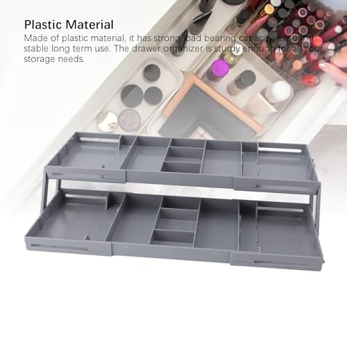 - Material】Our expandable drawer organizer is made from environmentally friendly plastic, ensuring a and convenient product for your use, it has strong load bearing capacity, stable and long term use. The drawer organizer is sturdy enough for all your storage needs.