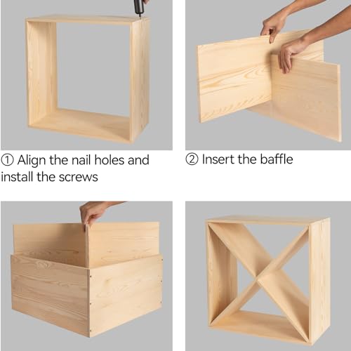 - 🍷【More Durable & Sturdy】 X-shaped internal structure design can make the whole cube winerack more stable and can bear more weight, sturdy and durable, can withstand more weight. The wine rack countertop is made of thick, premium fir wood, and not easy to deform; the surface has two layers of varnish, which makes this racks surface more smooth and extends its service life.