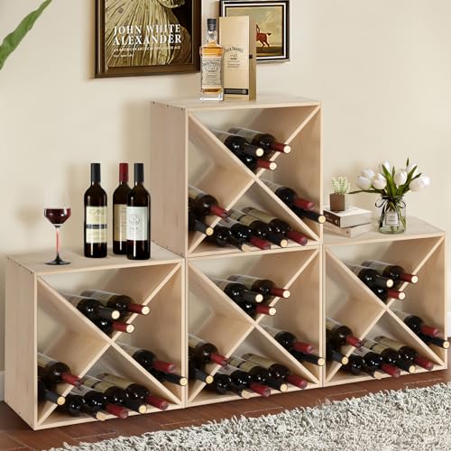 - 🍷【Spacious Storage Space】 This wood wine rack comes with 4 cubical storage compartments for 24 bottles in total, with each segment holding up for 6. Featuring a compact cube shape, more than one of these space-saving wine racks can be stacked high or side by side to get maximum storage, great for residential and commercial premises.