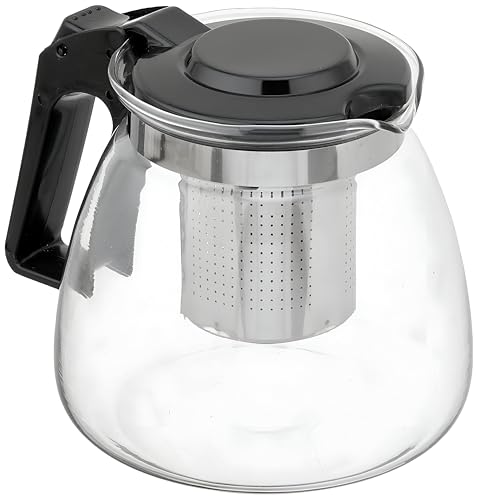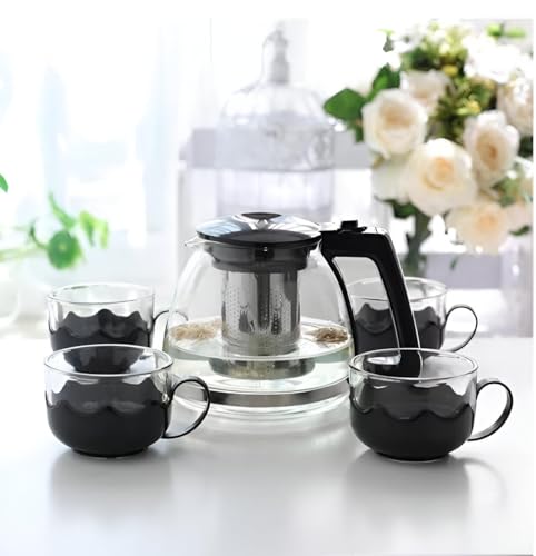 Generic - Drinkware Collection - Clear Glass Pitcher with 4 Matching Cups, Detachable Plastic Handle, Interior Stainless Steel Filter for Herbal Tea and Infusions
