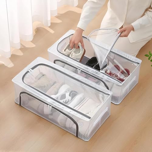 Generic - Durable Foldable Shoe Storage Organizer with Transparent Cover and Metal Frame 60×30×16 cm Moisture Proof and Mold Resistant Under Bed Storage Box