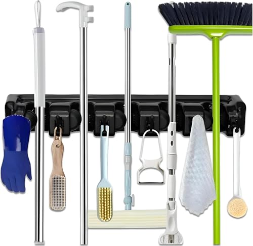 - VERSATILE STORAGE: Wall-mounted organizer rack with multiple slots and hooks designed to efficiently store and organize various gardening tools and cleaning supplies