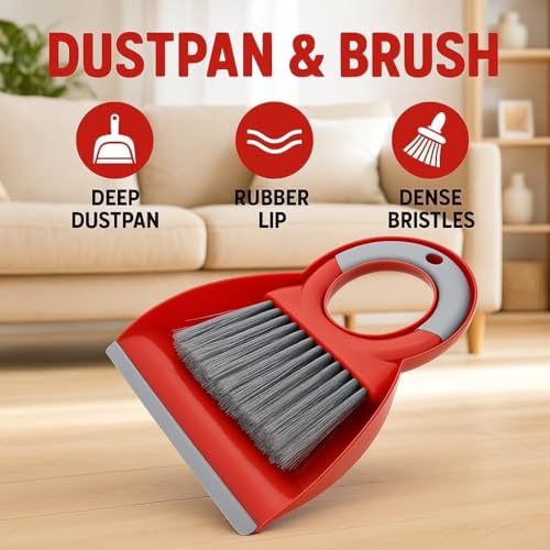 - Dustpan and brush set for fast tidy-ups: sweep crumbs and dust from your desk, car seats, sofa corners, and table in seconds, so small messes never turn into big stress.