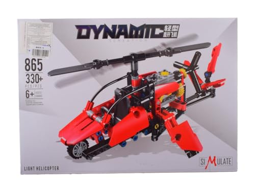 Generic - مكعبات بناء مجسم هليكوبتر بإضاءة ديناميكية للأطفال بعمر 6 سنوات فما فوق، أكثر من 330 قطعة - لون أحمر