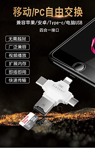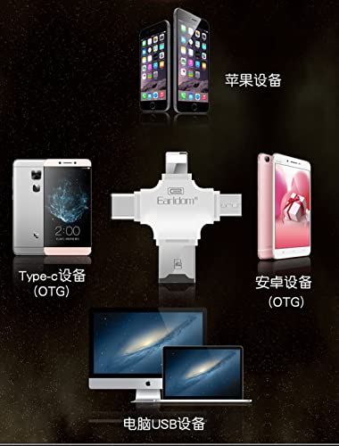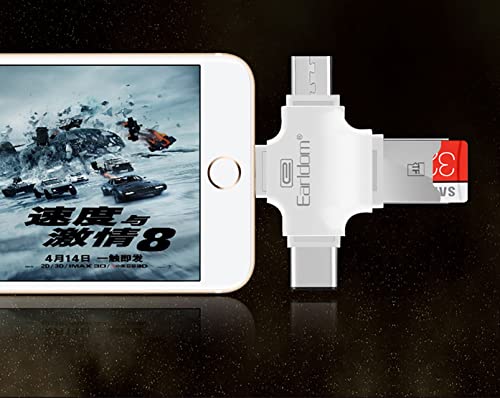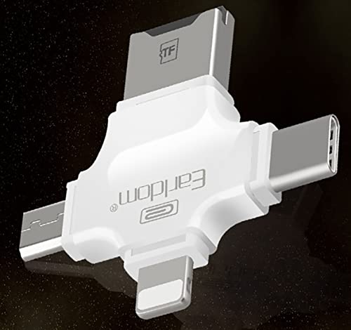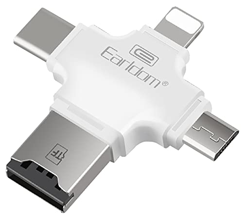 Earldom - Earldom ET-OT20 4 in 1 Multi-Function SuperSpeed Portable TF Card Reader supporting iOS, Android, Type-C, Micro USB, Apple Lightning Cable, USB, White