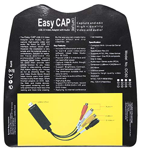 EasyCap - محول فيديو USB 2.0 مع كابل صوت من ايزي كاب