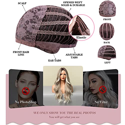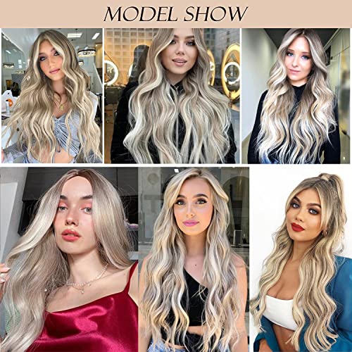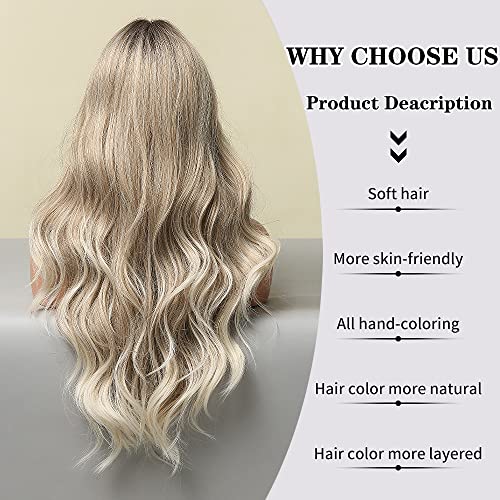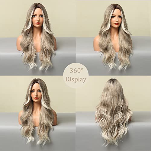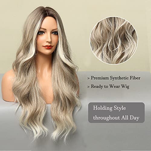 ECIF - Ombre Platinum Blonde Wig Long Blonde Wigs For Women Middle Part Wavy Cosplay Wig Synthetic Hair Heat Resistant Fiber For Daily Use (Ombre Blonde, 26 Inch)