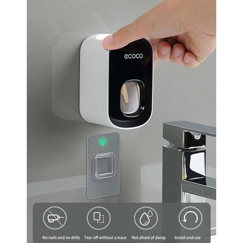Spaceshoop - Ecoco Automatic Toothpaste Dispenser, White, Hands Free, Automatic, Toothpaste Holder