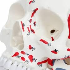 - DETAILED MARKINGS: Numbered parts and colour indicators highlight key anatomical features, sutures, and structural elements