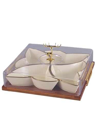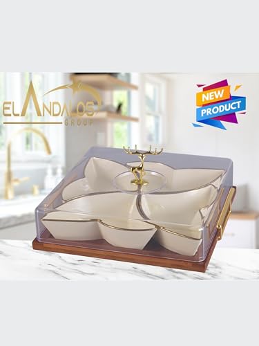 • تصميم أنيق: تتميز مجموعة أطباق تقديم الطعام هذه بقبة زجاجية أنيقة باللون البيج مع قاعدة من الخيزران، وهي مثالية لعرض المخبوزات أو الحلويات.