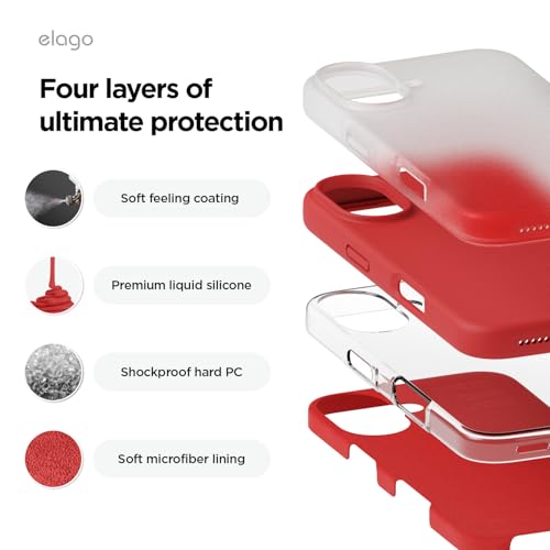 elago - elago Compatible with iPhone 16 Plus Cover, Premium Liquid Silicone Cover, Full Protective Cover, Shockproof, Slim Cover, Anti-Scratch Microfiber Lining (Red)