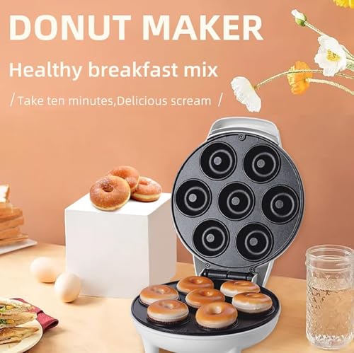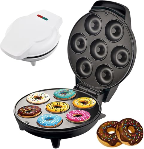 Generic - Electric Donut Maker, 7 Molds, White and Black, Non-Stick Donut Maker with Indicator Light on and Ready for Home Kitchen