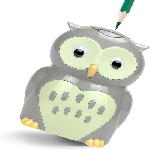 - Cute Owl Charm & Portable Size:Adorable owl design makes sharpening fun! Compact (10.5cm tall) fits school bags, ideal for classrooms, homework desks—turns a chore into a joy.