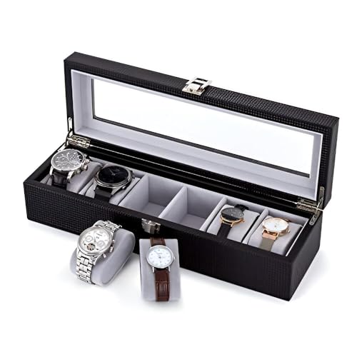 Generic - صندوق تخزين ساعات أنيق بتصميم مكون من 6 أقسام مصنوع من الجلد الصناعي المتين يتضمن قفل ومفتاح آمنين للهدايا الفريدة لأعياد الميلاد أو الذكرى السنوية