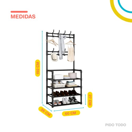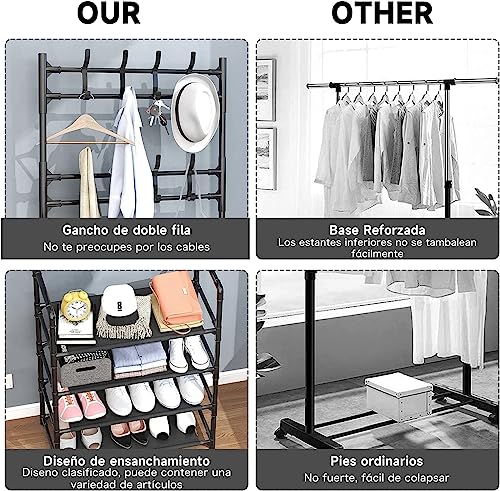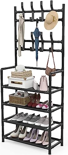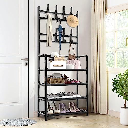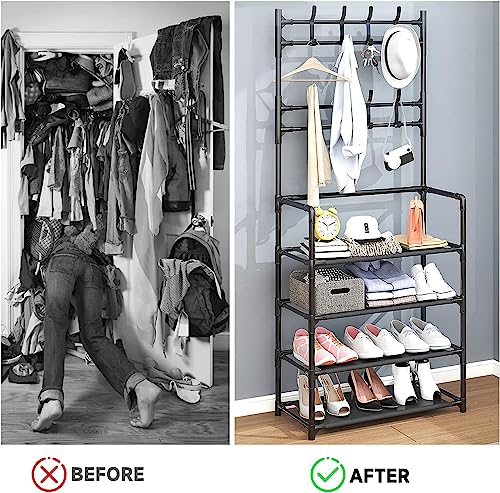 Elly Décor - Elly Décor Multifunctional Shoe Rack and Coat Rack, 16 Hooks Entrance Coat Rack, Large Space Shoe Rack, Shoe Rack with 5 Levels, Easy Assembly, 2 in 1 Shoe Rack