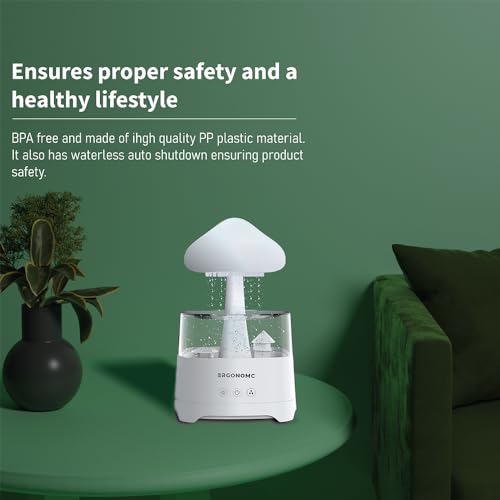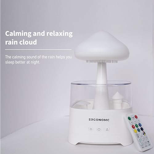 Ergonomc - Rain Cloud Humidifier Water Drip, 2X Cool Mist Rate Ultrasonic Aromatherapy Diffuser : Remote Controlled, 7 Color Night Light, 450ml, Auto Shut Off, Mushroom Humidifier, 1Yr Warranty