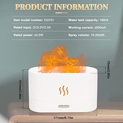 - 【Super Quite & Auto Shut-Off 】20dB ultra-quiet work, helps to soothe the mood, relieve stress, and improve sleep quality. And, the auto shut off function help the flame diffuser to stop working once lack of water, making it very safe and reliable. Please do not exceed the max Water Line of 180ml, can work for 2-8 hours.