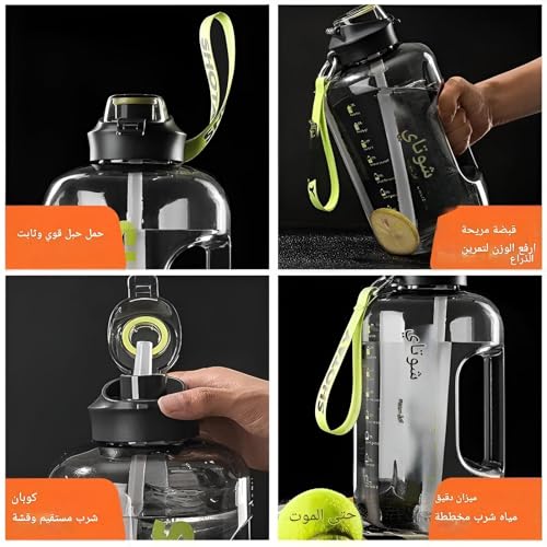 - Its durable characteristics, its light weight, with a wide nozzle and a large handle for easy grip, ensure a comfortable experience, and it also has distinctive accessories such as a Porter belt, enhancing your ability to keep encouraging yourself to drink water in sufficient quantities throughout the day.