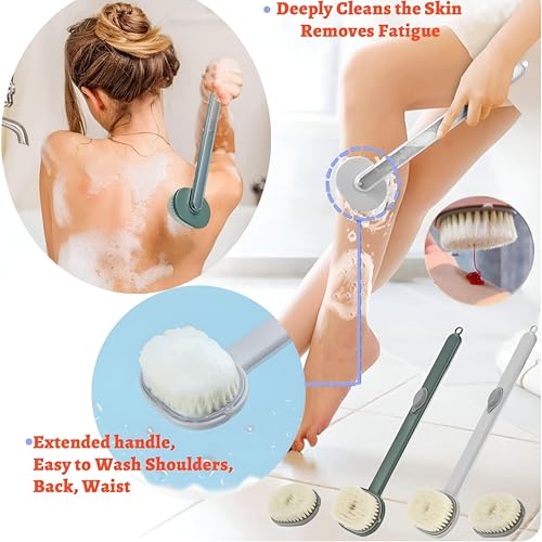 - **مقبض طويل مريح ورأس فرشاة قابل للفصل للوصول إلى الجسم بالكامل والنظافة:** تم تصميم المقبض الذي يبلغ طوله 38 سم مع انحناء طفيف لتوفير تجربة استحمام محسنة، خاصة للوصول إلى المناطق الصعبة مثل الظهر والساقين والقدمين. يؤدي هذا إلى التخلص من الحاجة إلى الانحناء بشكل مفرط أو بذل جهد كبير لتنظيف تلك الأماكن التي يصعب الوصول إليها. رأس الفرشاة قابل للفصل، مما يسمح بسهولة الشطف والتنظيف بعد كل استخدام. تعمل هذه الميزة على تعزيز النظافة ومنع تراكم العفن أو.