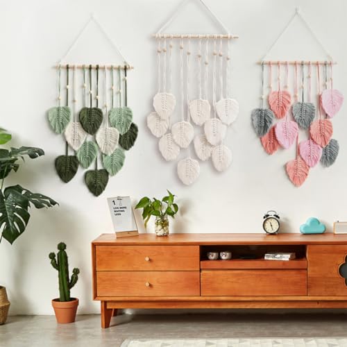 EXQUILEG - EXQUILEG Macrame Wall Hanging Handmade Home Decorations Boho Macrame Tapestry Woven Wall Hanging Leaf Feather Wall Decoration (Beige)